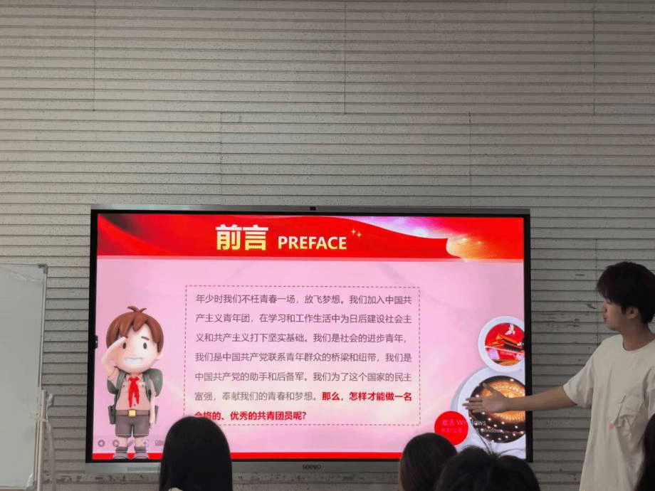 活动伊始,王德计首先介绍了共青团十九大的重要意义和主要内容,强调了新时代团员青年肩负的历史使命和责任担当。随后,王德计结合共青团十九大的精神实质,从团员青年的思想引领、组织建设、社会实践等多个方面,深入解读了新时代团员先进性的具体要求。她阐释,作为新时代的青年团员,要坚定理想信念,增强“四个自信”,积极投身社会实践,勇于担当时代责任,努力成为有理想、有本领、有担当的新时代青年。