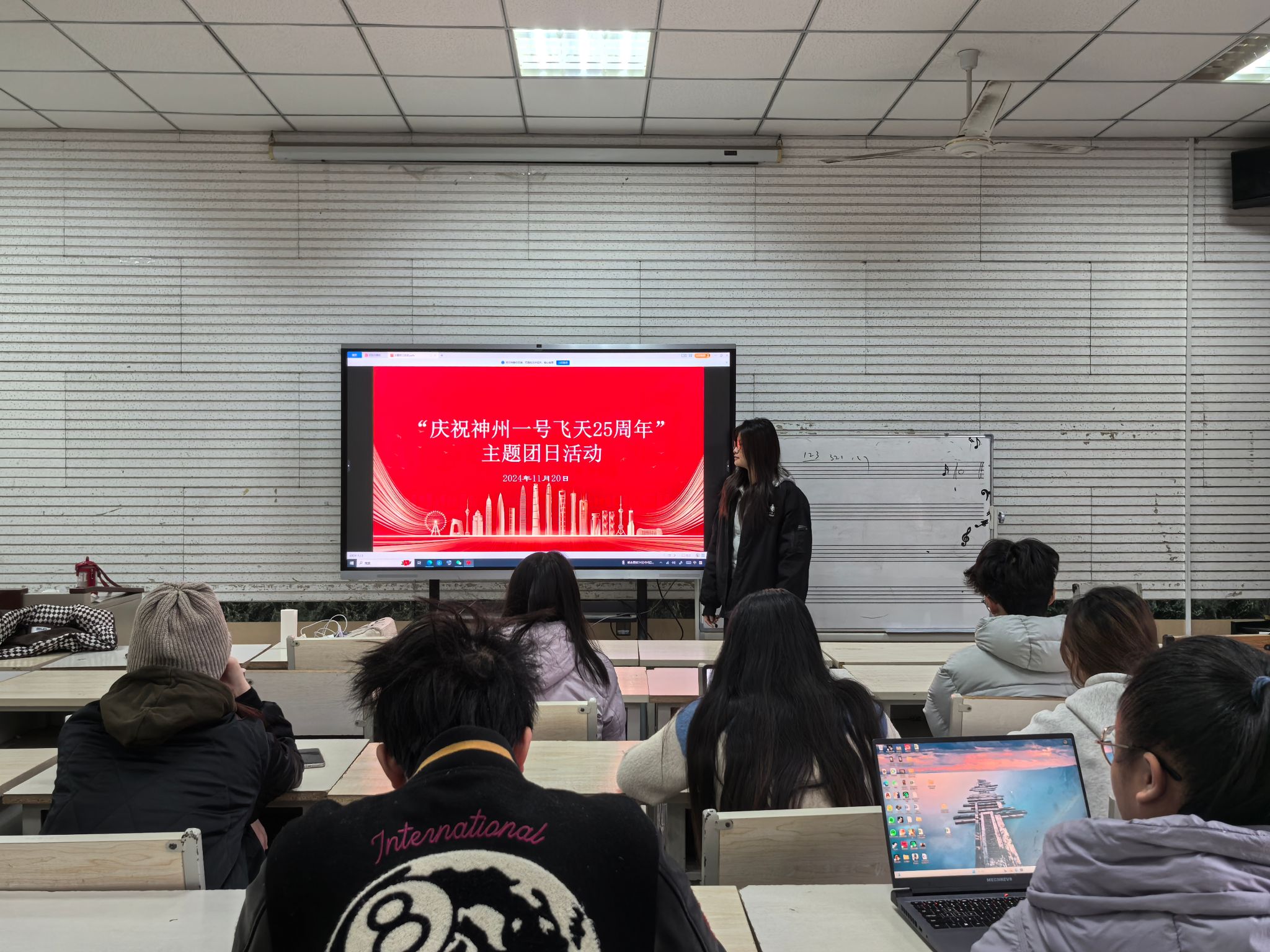 为进一步增强学生对我国航天事业发展历程的认识与自豪感,11月20日,我院举办“庆祝神州一号飞天25周年”主题团日活动视频观看会。活动由院学生会团学部部长公跃桦主持,学院部分团员与青年干部参会。