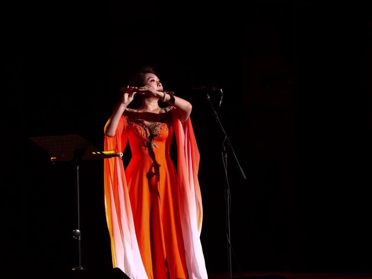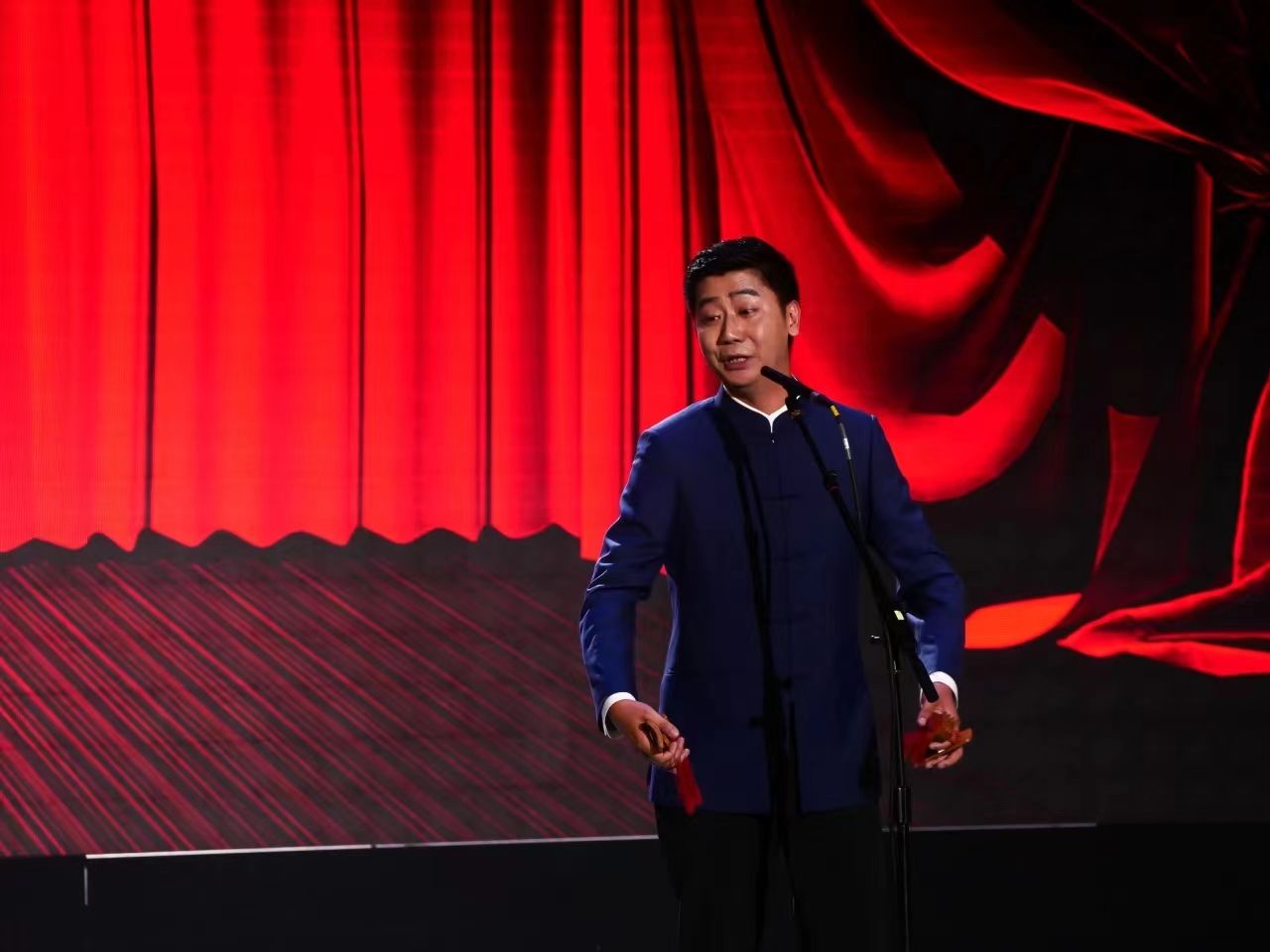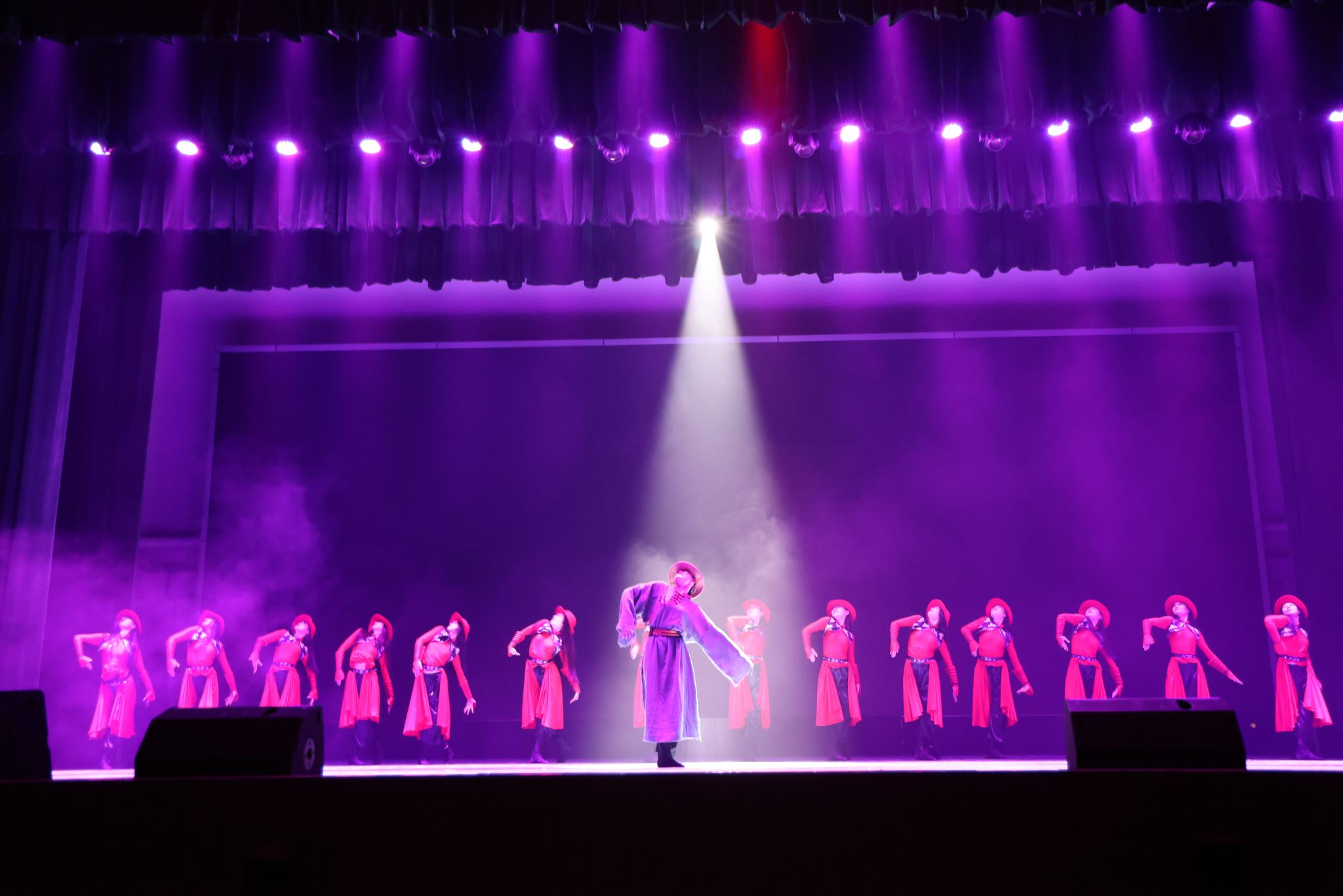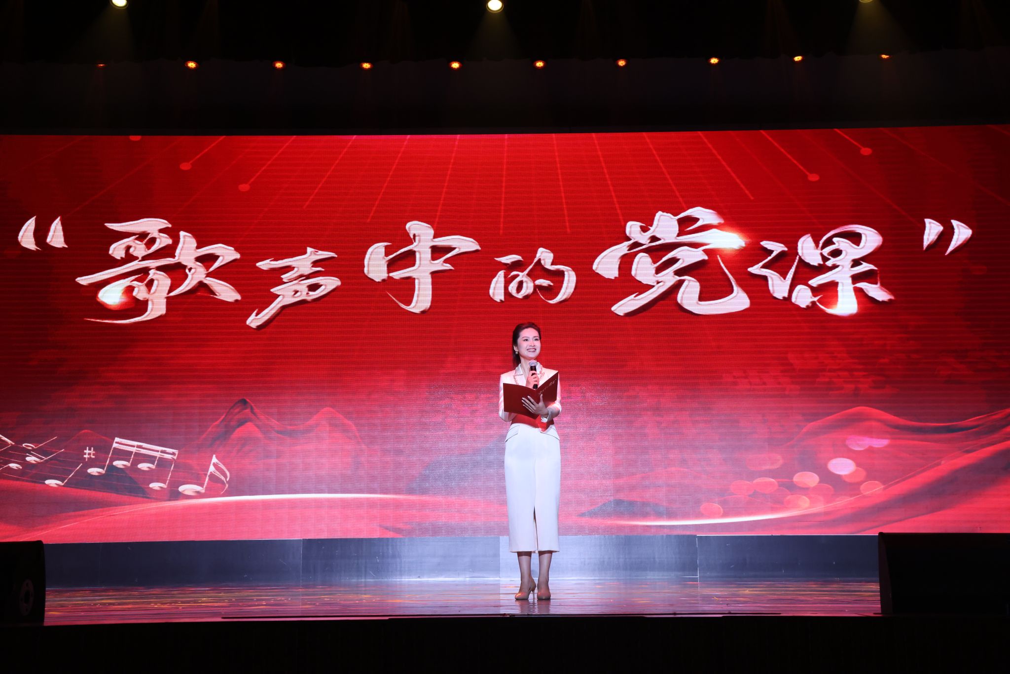 文艺演出以鼓乐合奏《龙腾虎跃》开场,鼓声激昂,展现中华民族气势与力量;山东快板《小段集锦》以幽默韵律串联生活趣事,逗乐观众;舞蹈《走近光里》颂扬蒙古族女性自信豁达,展现光的千变万化。下半场艺术党课以歌叙史,红色经典歌曲重温党史,感悟党的伟大成就与理想信念,汲取奋进力量;《印象国乐·大曲》结合传统音乐与现代技法,重塑敦煌古谱文化元素,彰显大国辉煌文化,演出在《我的祖国》磅礴大气的民族管弦乐合奏与合唱声中圆满落幕。整场演出汇集了中国古典音乐的蓬勃婉美,中国民族舞蹈的刚劲柔美,快板书的欢,传统相声的乐以及经典红色歌曲的民族气节。
