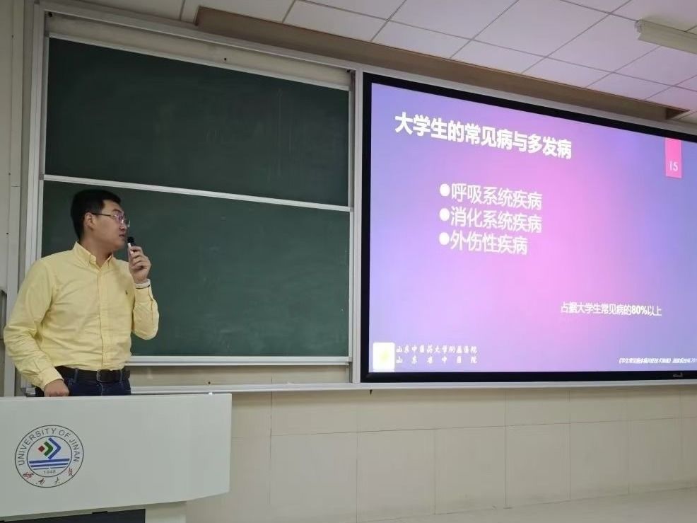 为进一步推广学生安全卫生知识,增强紧急救护的意识与能力,10月18日,我院特邀山东省中医院肾内科主治医师修方睿及太阳成集团tyc151cc体育学院教师任海涛,在11J6401举办“安全卫生与应急救护”的安全教育专题讲座。